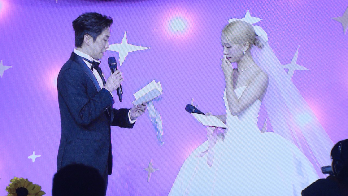 Lulu(黃路梓茵)、陳漢典今晚(1╱25)在文華東方舉辦婚宴,婚宴流程宛如一場高規格「婚禮實況綜藝秀」,交換誓詞時,陳漢典說常在想活著的目的是什麼,現在終於找到了,「是找到我愛的人,她也很愛我,然後開心的生活,一起生女育兒,一起攜手過完這一輩子」。Lulu則跟老公許下輩子,「請你一定一定要找到我,沒有我會很傷心的」。
