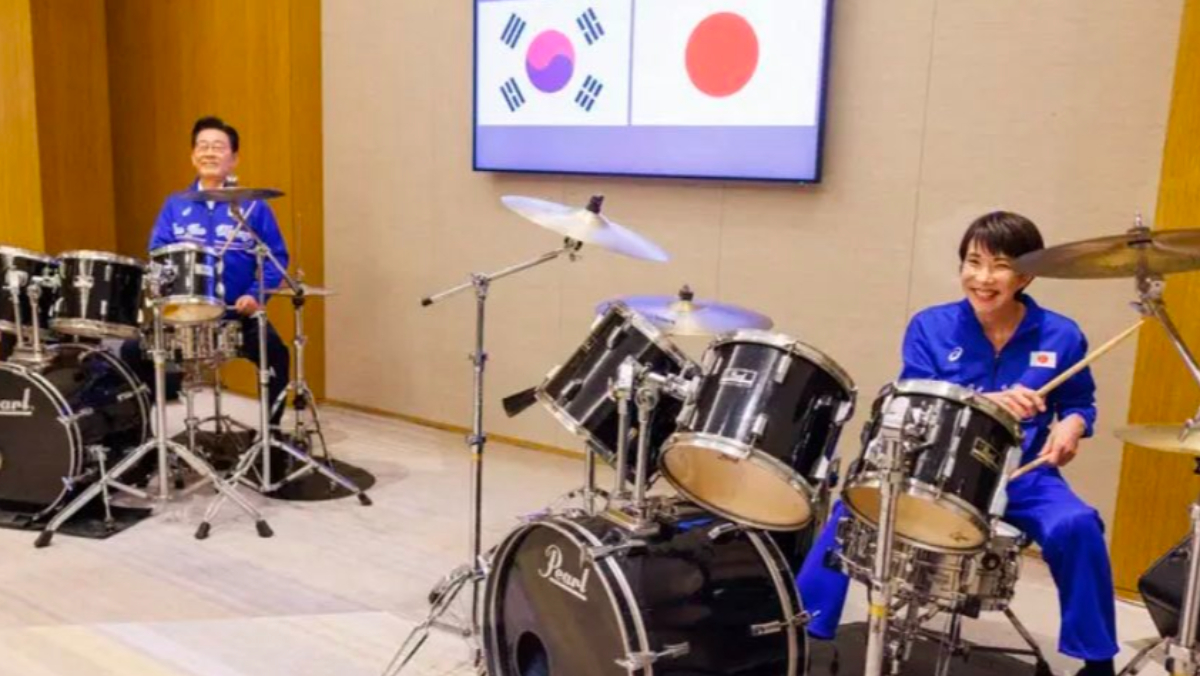 日本首相官邸週二在X平台發布驚喜影片,是首相高市早苗與南韓總統李在明一起打鼓的畫面。他們一起演奏了南韓天團BTS的《Dynamite》、以及Netflix爆紅動畫《Kpop獵魔女團》插曲《Golden》,上演「打鼓外交」。
