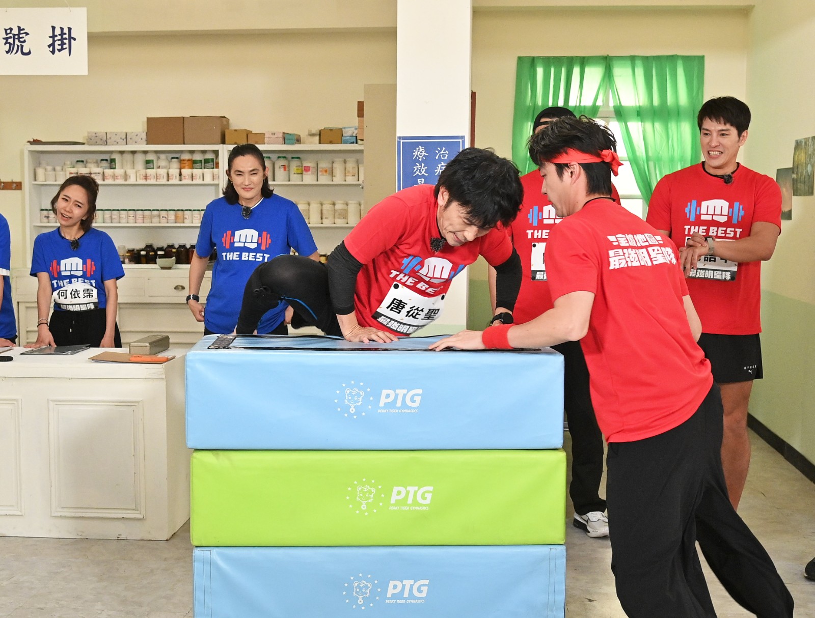 原先被視為劣勢的唐從聖與馬國賢也展現驚人實力,馬國賢在醫院場景的啞鈴推舉項目中動作標準、節奏穩定,獲高度評價;唐從聖則憑藉過往體操基礎,在跳箱項目中展現輕盈身手,讓錢薇娟驚呼:「太誇張了!」不過他一度失誤摔倒,跳箱也整座翻倒,為賽局增添變數。
