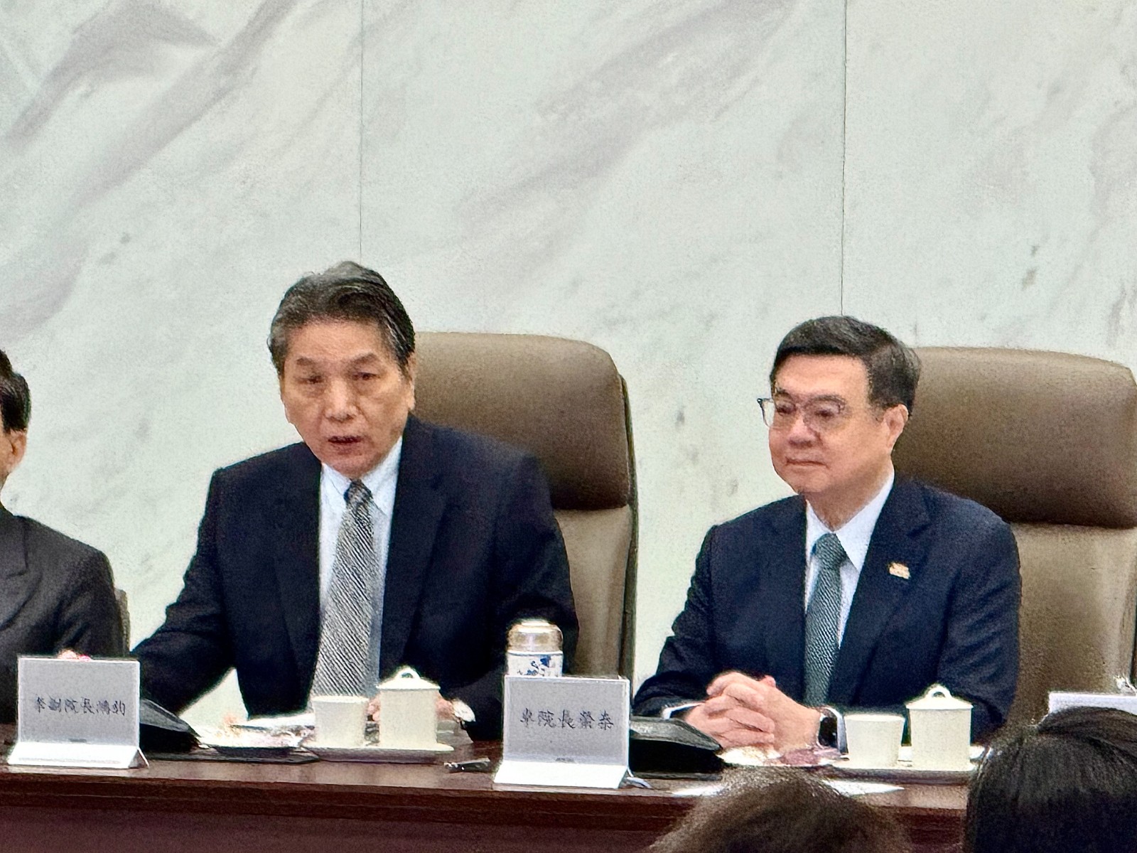 監察院副院長李鴻鈞(左)2025.12.19率領監察委員赴行政院進行114年巡察,行政院長卓榮泰(右)出席會議。郭宏章攝