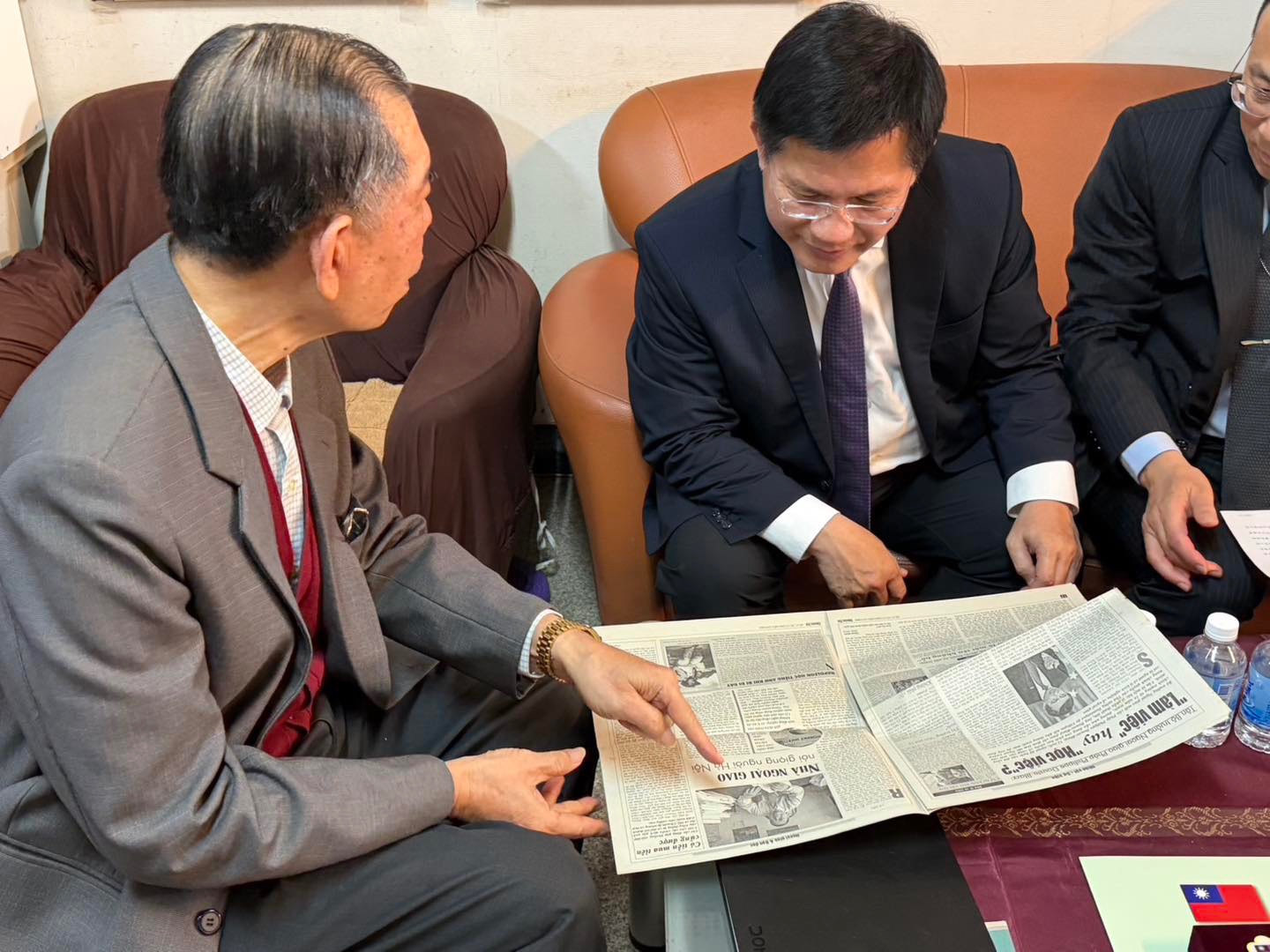 謝父在分享過程中還拿出一份珍藏多年的越南報紙;報導中,謝柏輝以「台灣外交官」身分受訪,卻因此遭到中國打壓,甚至連未售出的報紙都被要求回收。林佳龍分享,謝父看著那份報紙,臉上有滿滿的驕傲,卻也藏著深深的不捨。