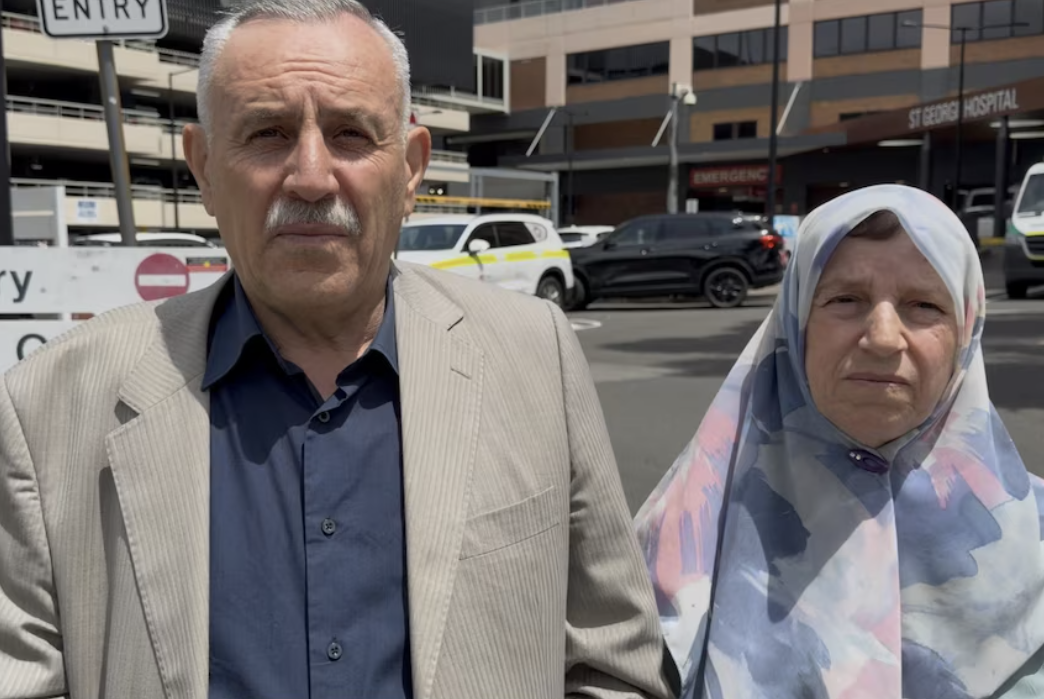澳洲雪梨邦迪海灘槍擊案中,一名水果店老闆阿美德奮勇奪下其中一名槍手的槍,阿美德的父母12月15日在雪梨接受澳洲廣播公司(ABC)訪問。翻攝澳洲ABC新聞網站