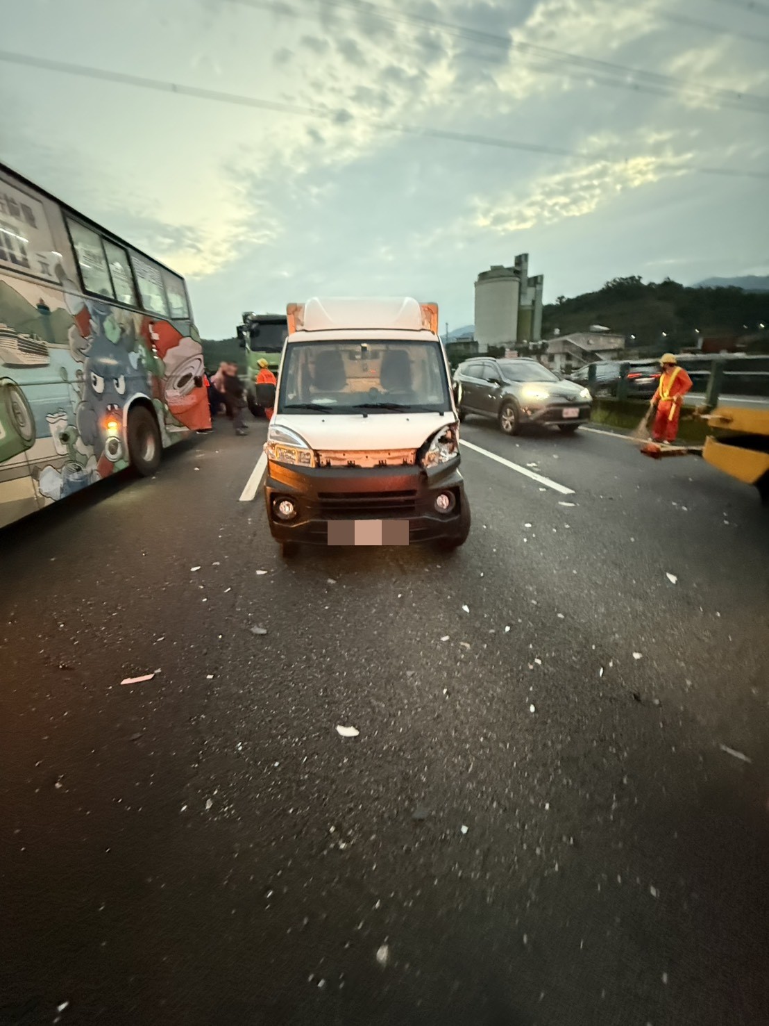 國道1號南向7.9公里七堵路段,12/19清晨發生國光客運與大貨車碰撞事故。翻攝畫面
