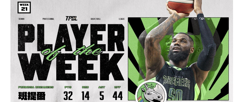 TPBL第二十一週單週最有價值球員(MVP)由班提爾拿下。福爾摩沙夢想家上週作客和平籃球館踢館臺北台新戰神,班提爾以近乎完美的進攻表現主宰全場,不僅帶領球隊收下七連勝,突破聯盟本季最長連勝紀錄,也以單週效率值 44 高居聯盟第一,力壓多位表現亮眼的球員,榮膺該週MVP。